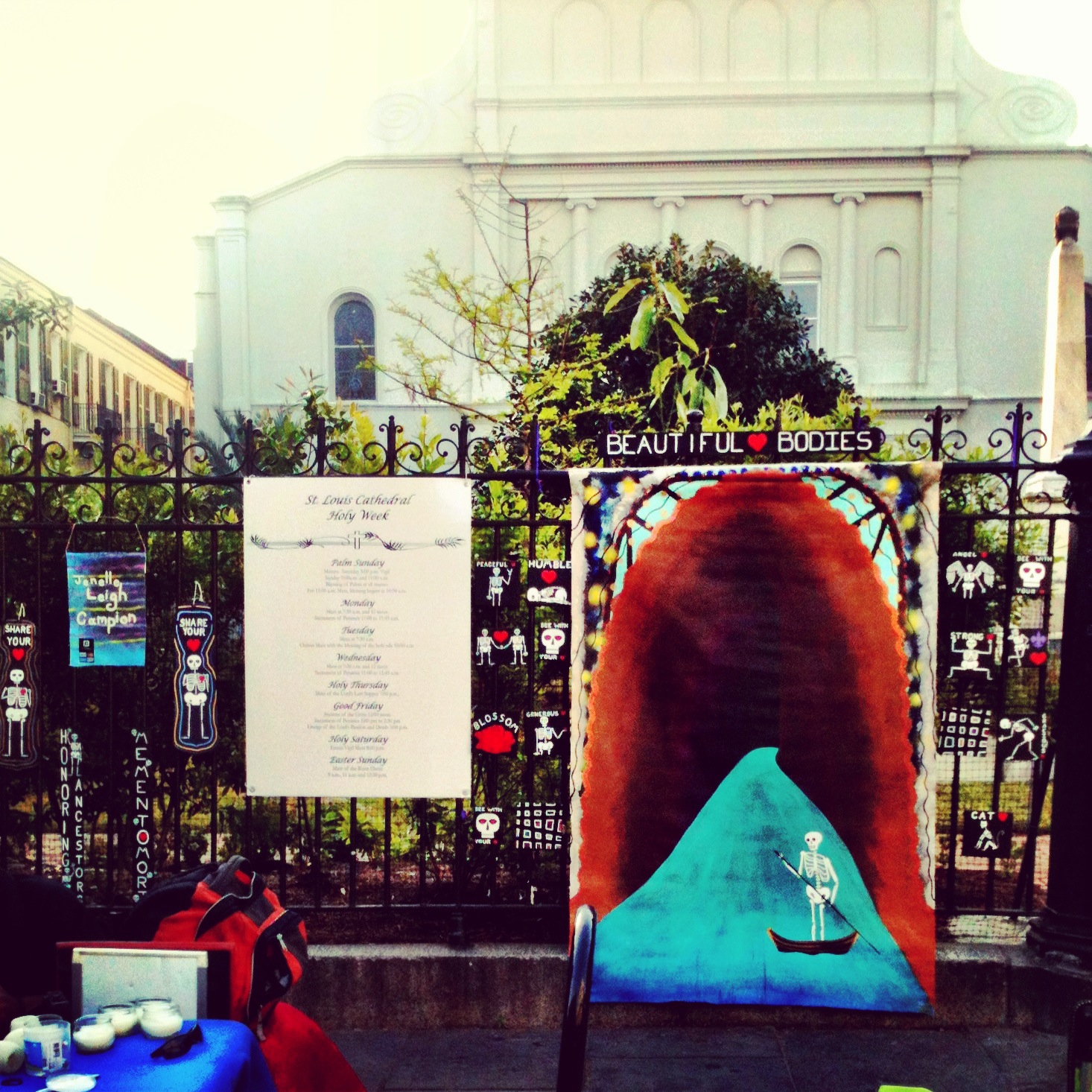 After 3 years living in Oakland, CA and studying at the California Institute of Integral Studies in San Francisco I have found my way back to New Orleans where I have been working as an artist. I wanted to recap some of my thoughts about what its been like slinging paint and selling paintings in the French Quarter at Pirates Alley on the fence behind St. Louis Cathedral.