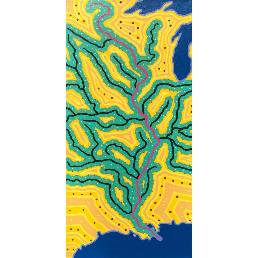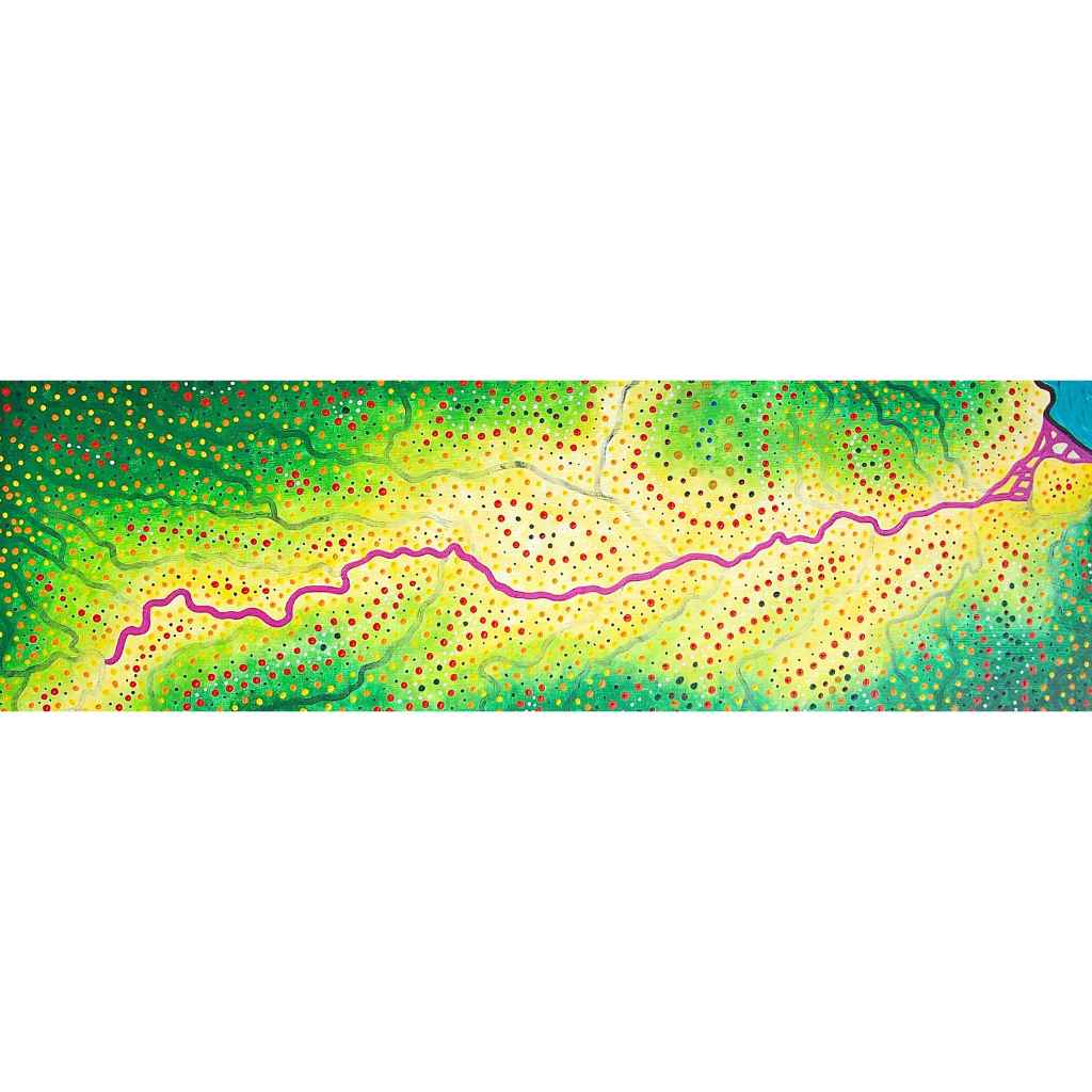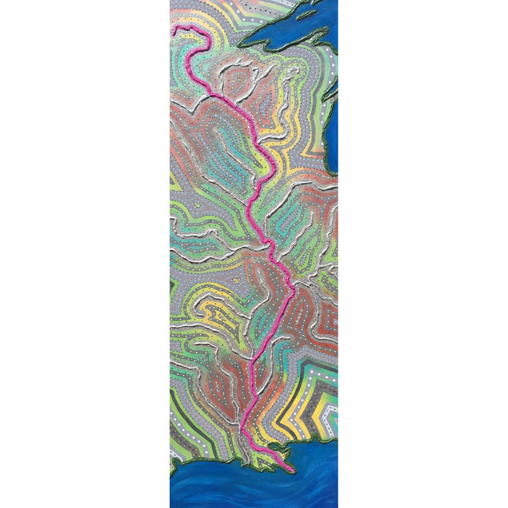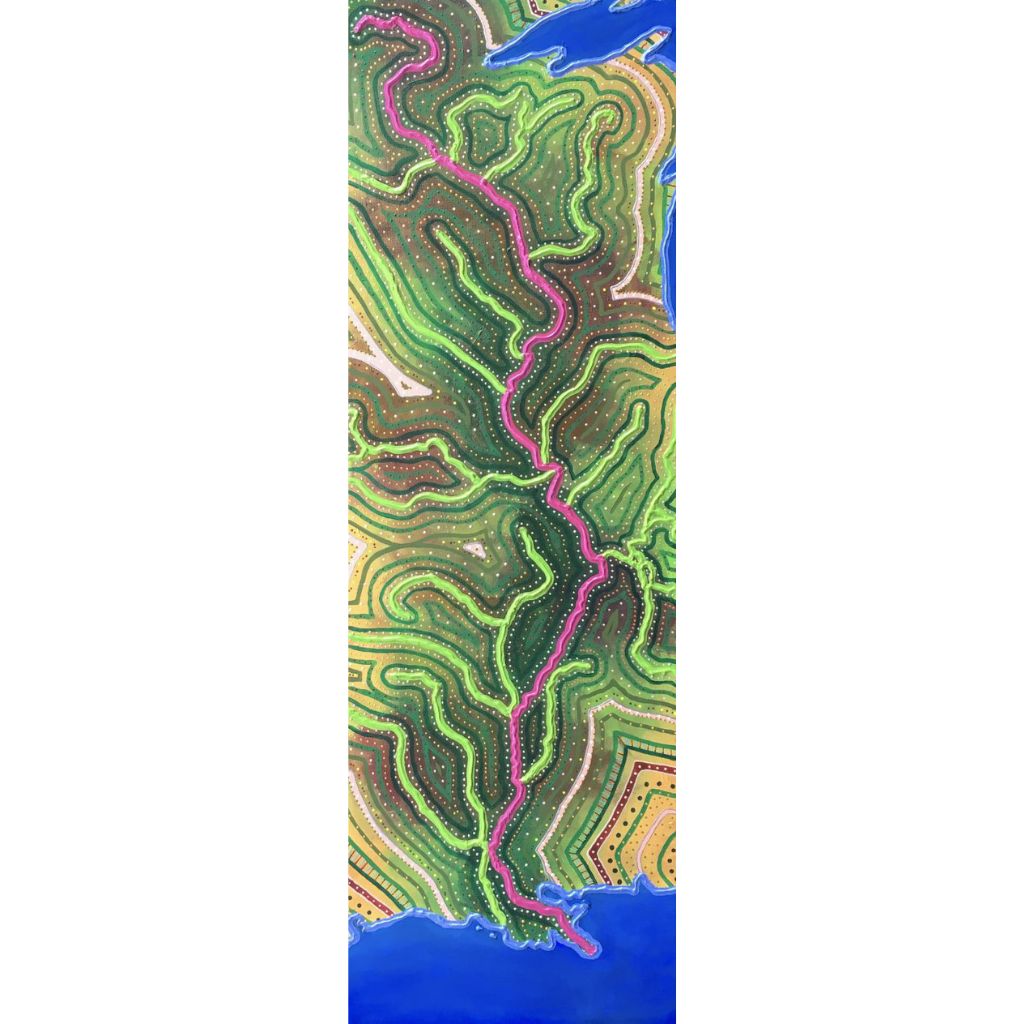 Rivers is a series of paintings in which Campion explores her fascination with journeying through landscape as an act of self-inquiry, akin to going on a vision quest or pilgrimage to a sacred site. In her work, the rivers are depicted like tuning forks echoing across the surface of the Earth.