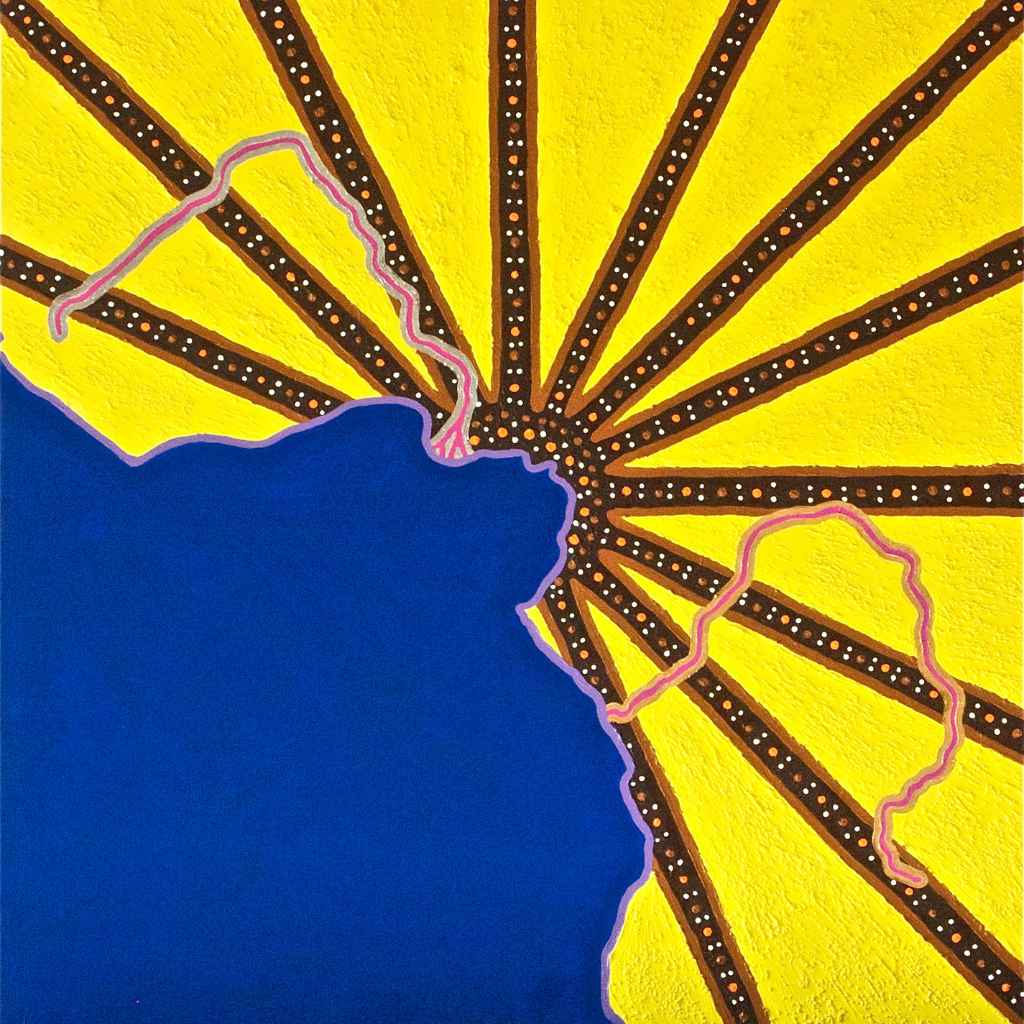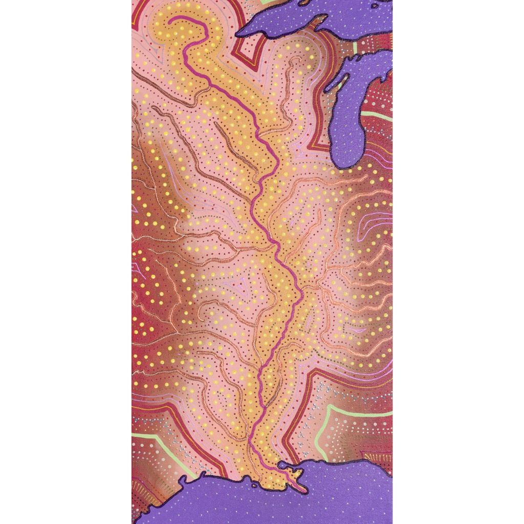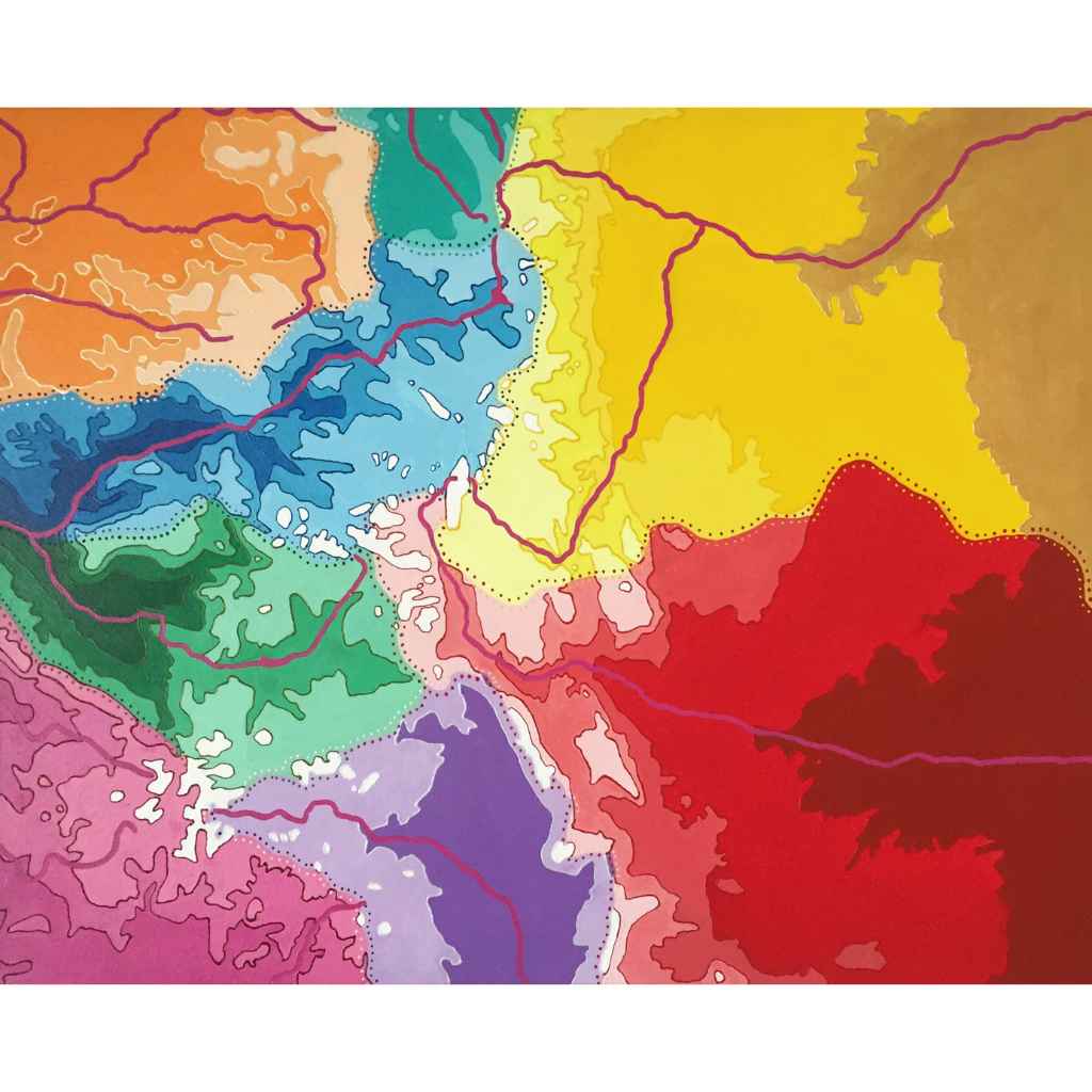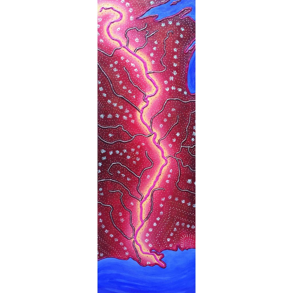 Rivers is a series of paintings in which Campion explores her fascination with journeying through landscape as an act of self-inquiry, akin to going on a vision quest or pilgrimage to a sacred site. In her work, the rivers are depicted like tuning forks echoing across the surface of the Earth.