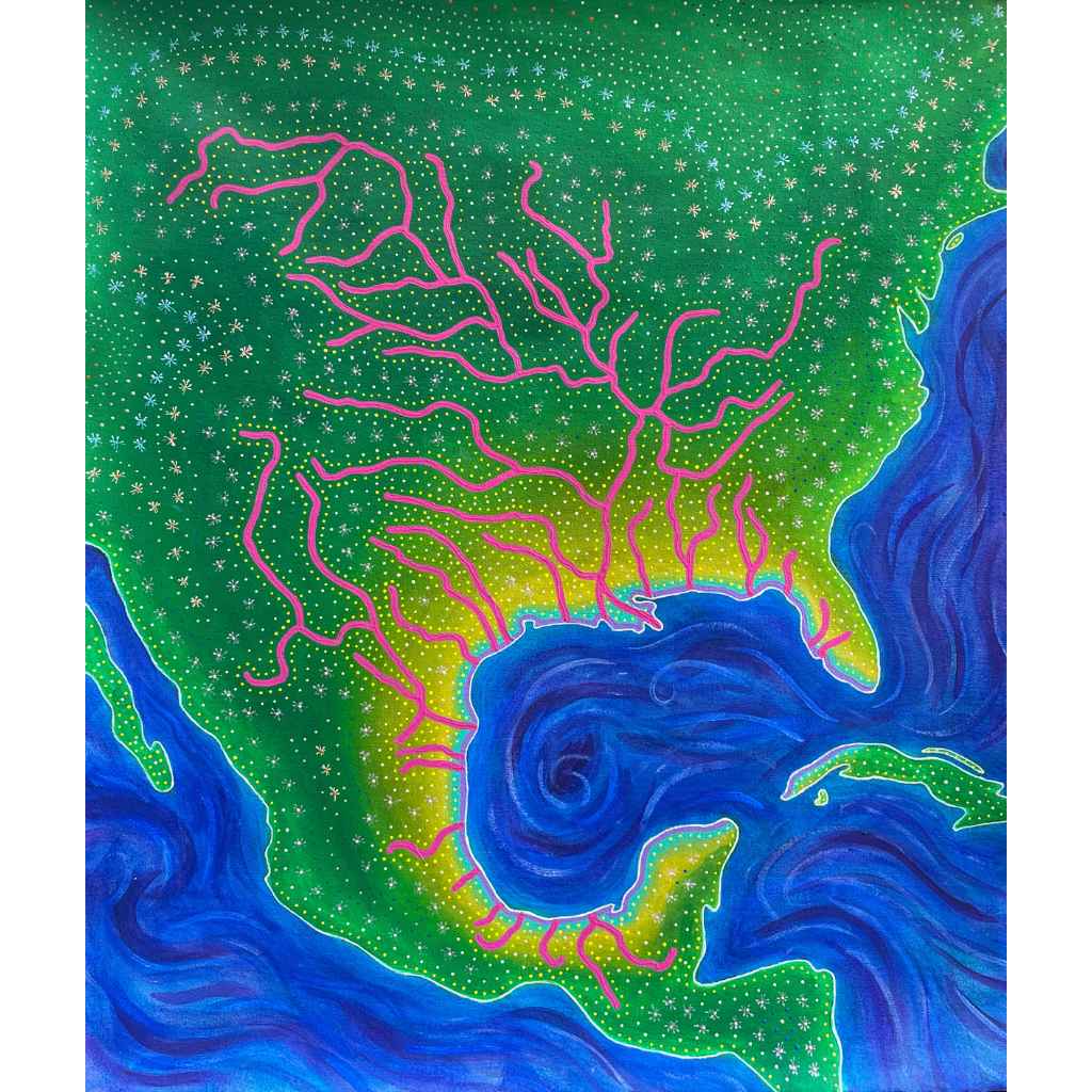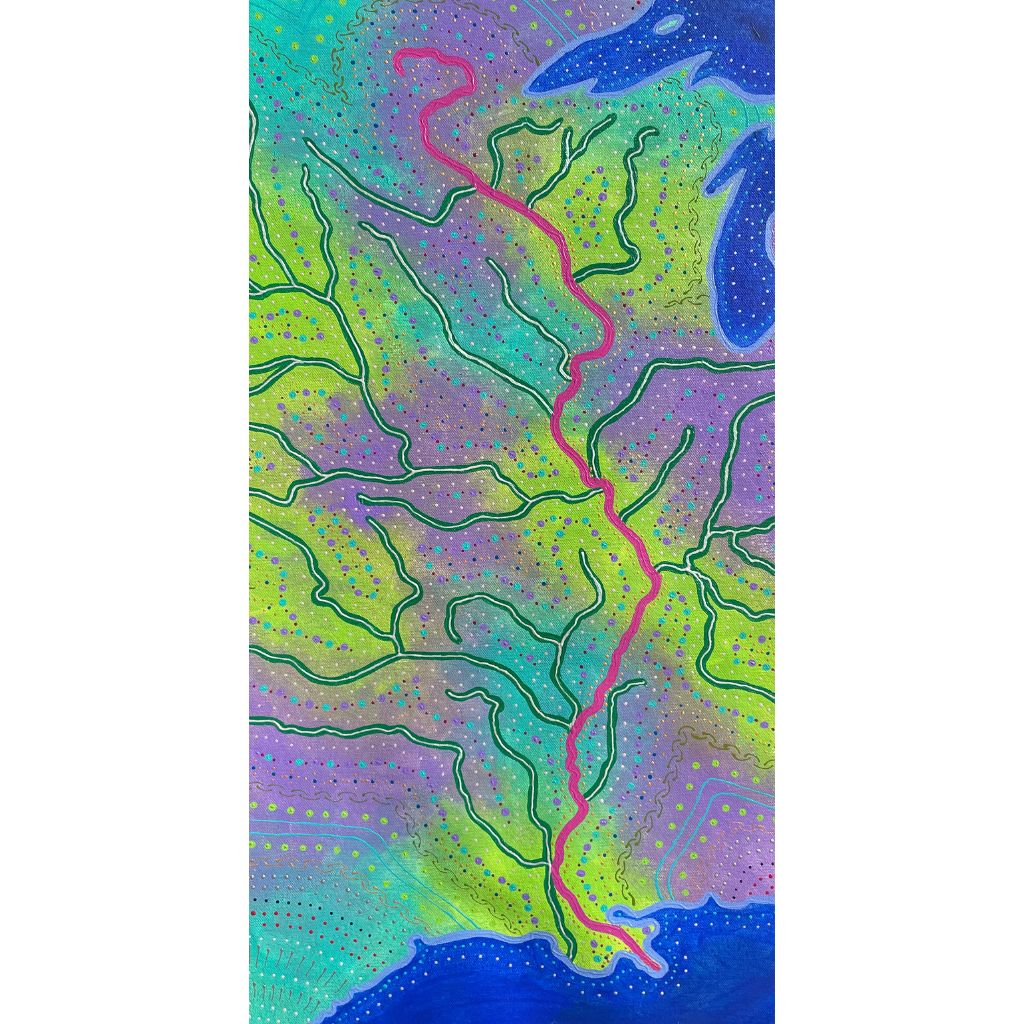 Rivers is a series of paintings where I delve into my fascination with traversing landscapes as a form of self-exploration, akin to embarking on a vision quest or a pilgrimage to a sacred site.