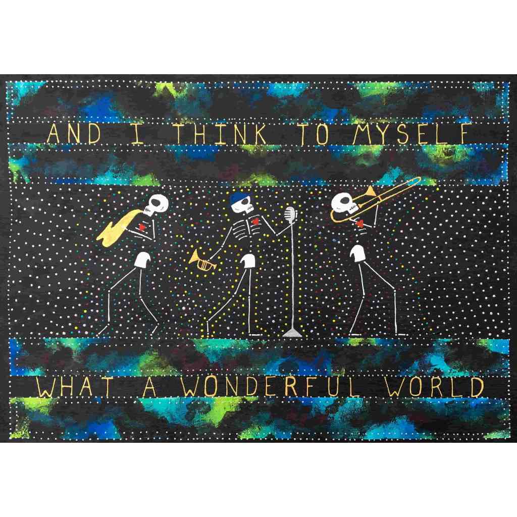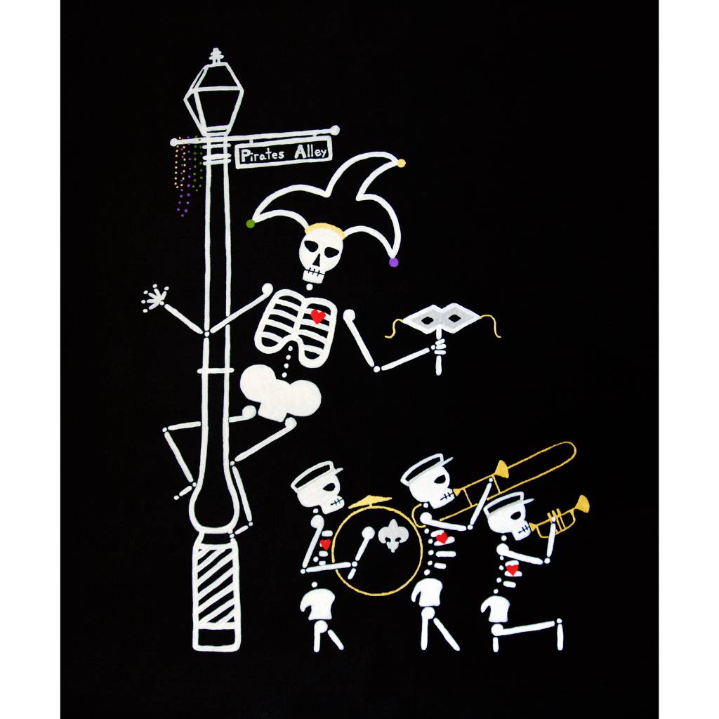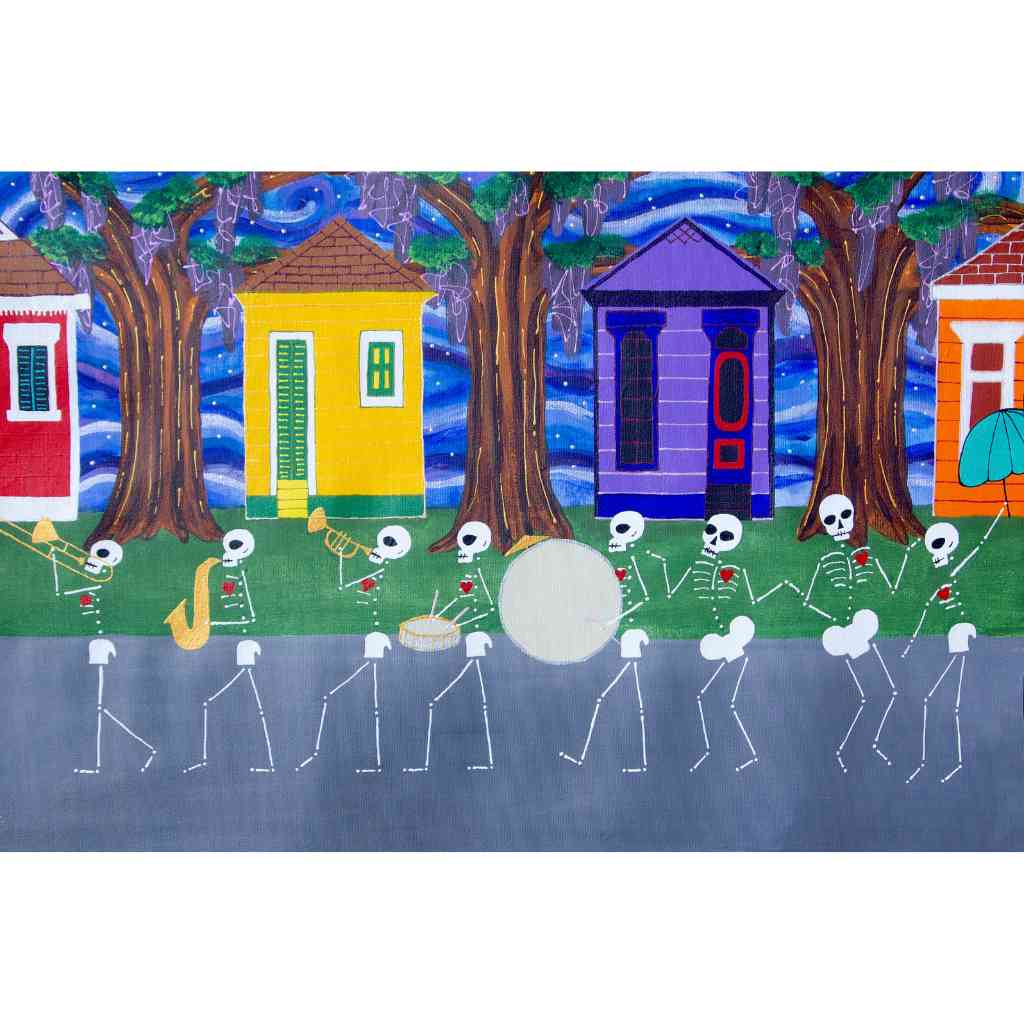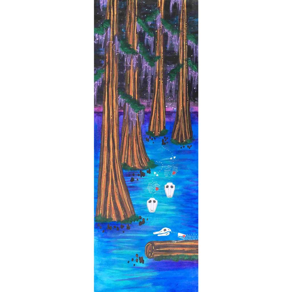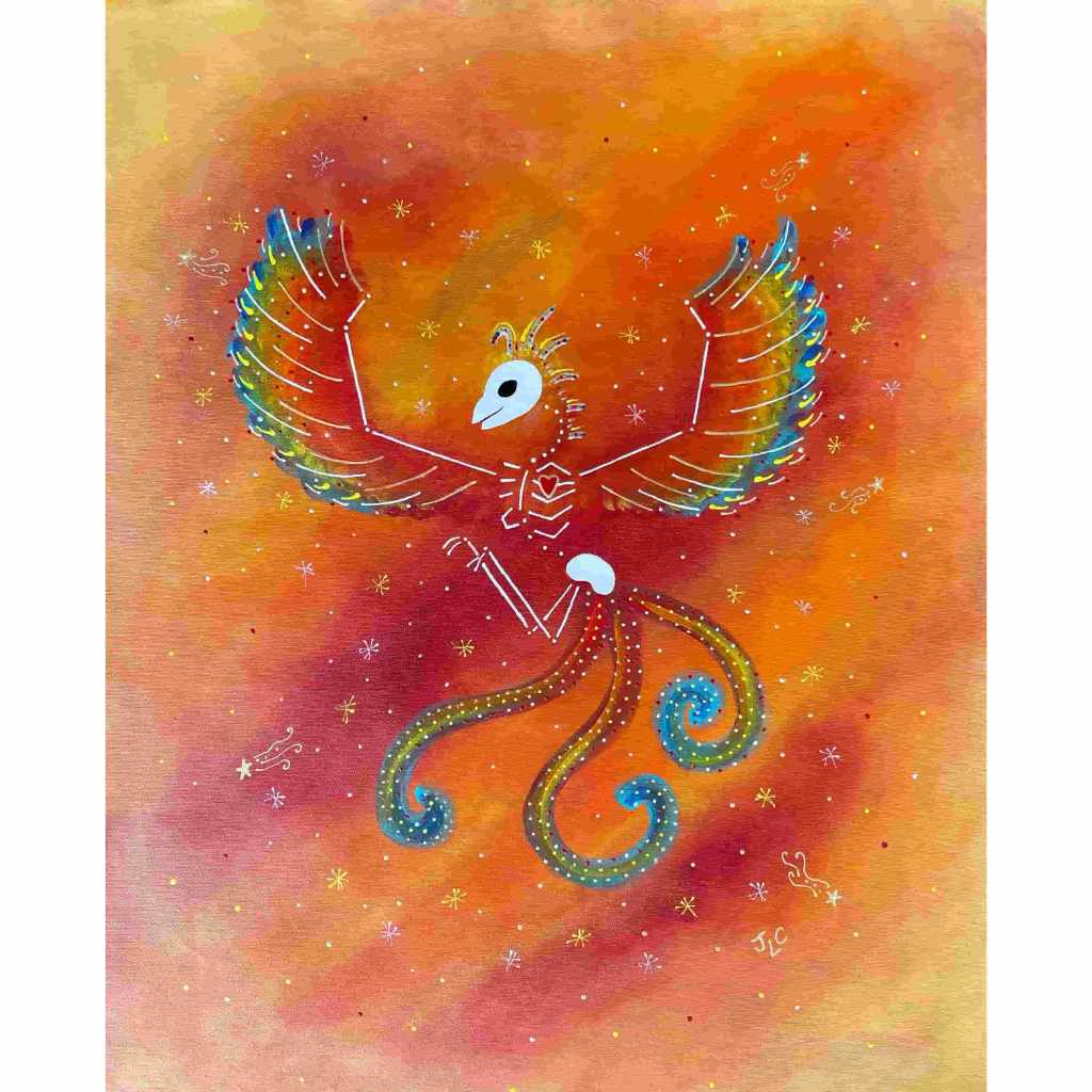 In this series skeletons symbolize our essential connection to nature and our ancestors and the heart is a reminder of our capacity for nurturing relationships. In my color palate black references grounded wisdom, white symbolizes interconnection, and red radiates passion.